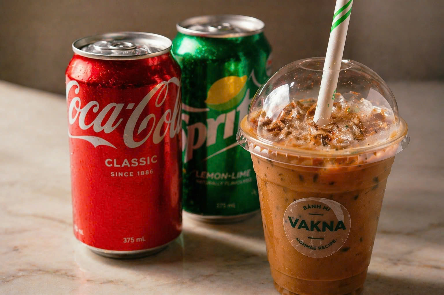 From bold Vietnamese iced coffee to refreshing juices, iced teas, and classic soft drinks — the perfect pairing for every meal.